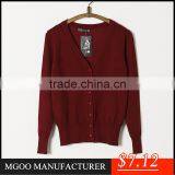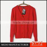 MGOO Cheap Price Stock Merino 100% Cotton Women Cardigan Sweaters Long Sleeves Melon Red Plain Outwear