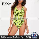 MGOO Hot Sale Yellow Leopard Print Swimsuit Low Side 82% Polyetser 18% Elastane One Piece Vibrant Pop Swimwear