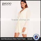 Plus Size Knot Oversized Dress Cream Long Sleeve Sexy V-neck Elegance Perfect Prom Dress