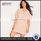 Plus Size Faux Suede Zip Up Shift Dress Nude Short Sleeve Sexy Elegance Split Curved Hem Dress