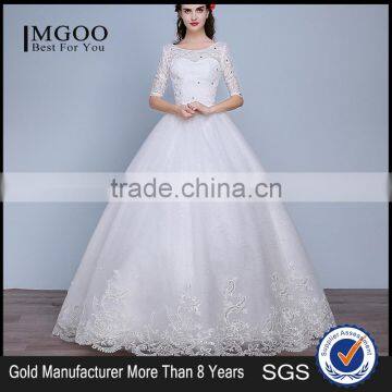 MGOO Elegant China Custom Made Wedding Dress Ballgown For Bridal Half Sleeves White Embroidery Dress