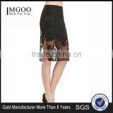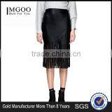 MGOO New Arrival OEM Services Women Black Faux Leather Midi Slinky Skirts With Tassels Bottom 15145A033