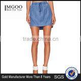 MGOO New Arrival Custom Made Denim Casual Mini Skirts For Women Blue Straight Tie Up Skirts 15144B543