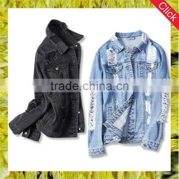 Custom Boyfriend Style Oversized Fit Jeans Jacket Women Plain Distressed Denim Jacket