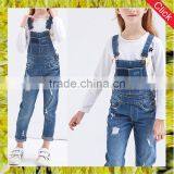Korean Style Girls Cotton Jumpsuit Kids Casual Ripped Denim Overalls Fitted Bib Jeans Pants Children Clothing Wholesale