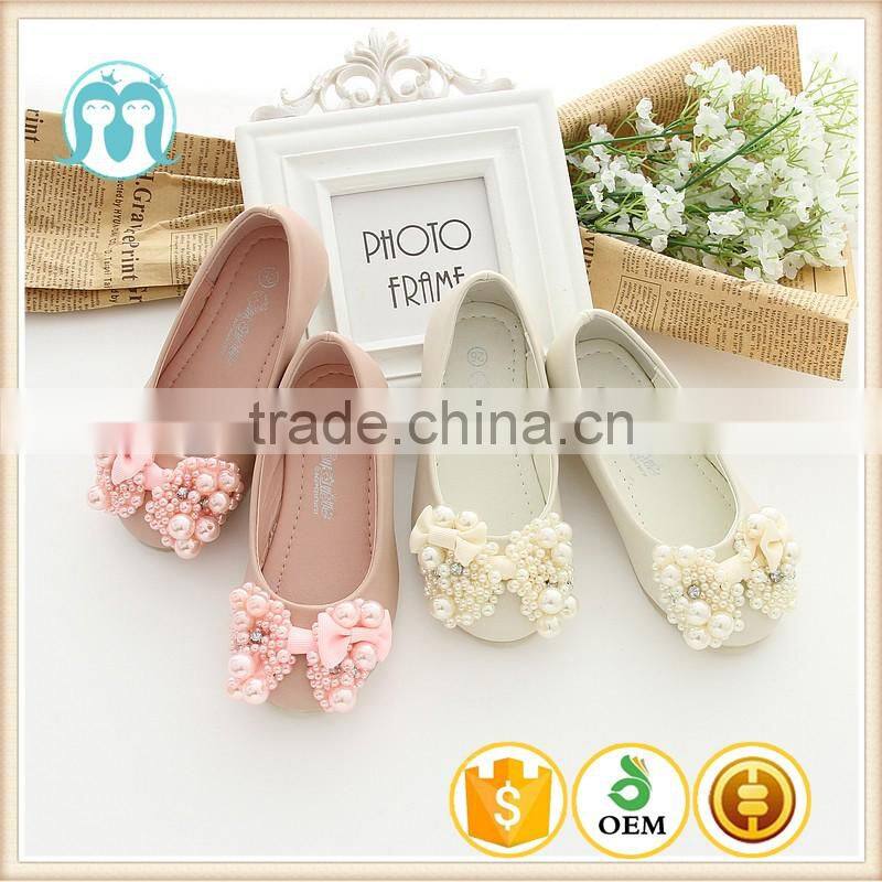 2017 Children Girls Princess Shoes Kids Pearls Wedding Party Dress Shoes