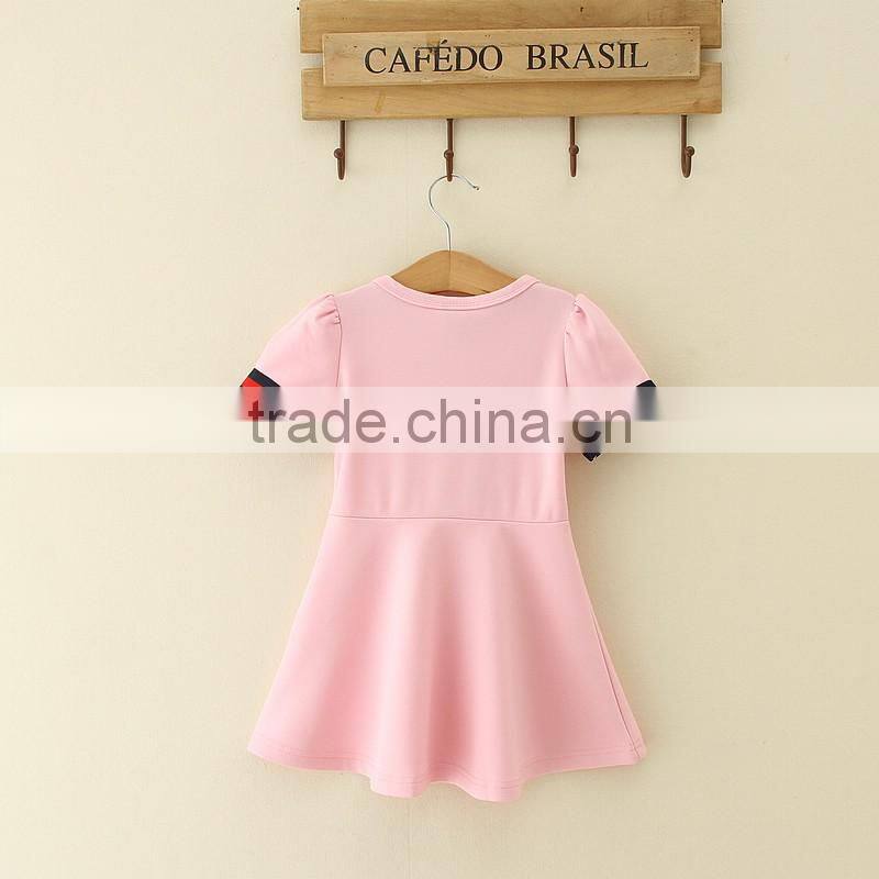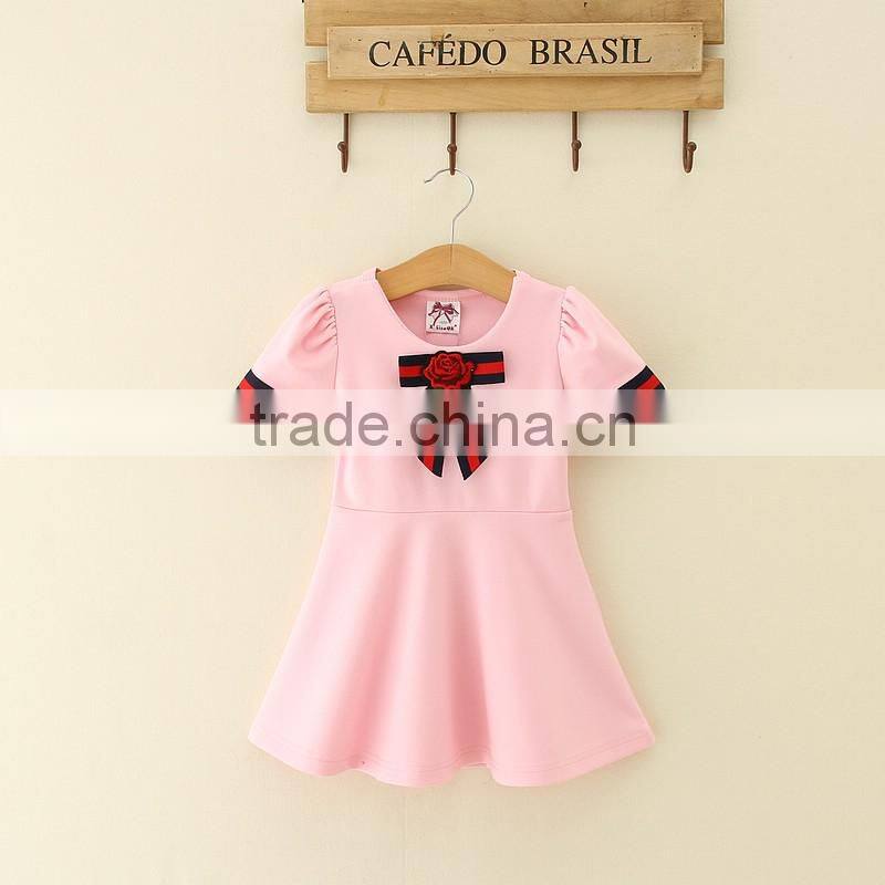 2017 Wholesale Clothing Flower Red Balck Stripe 3-5 Year Old Girl Dress