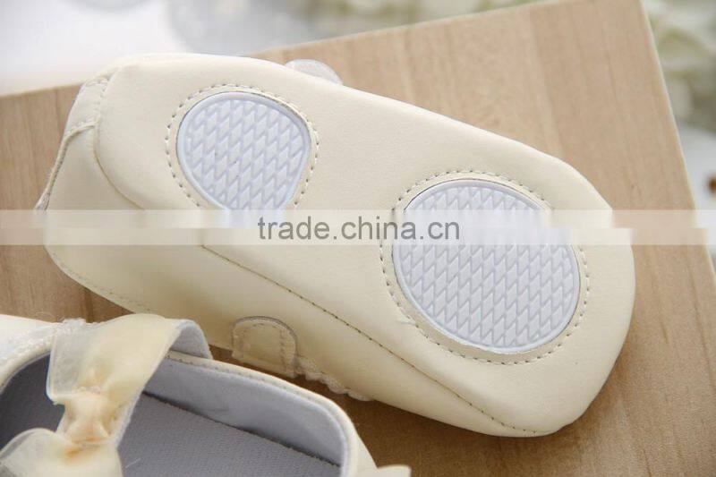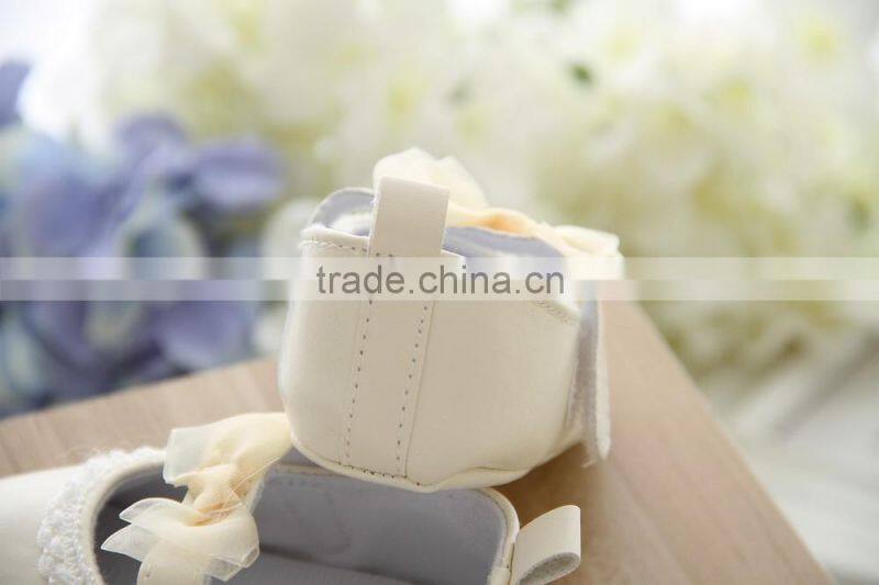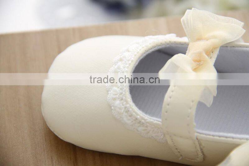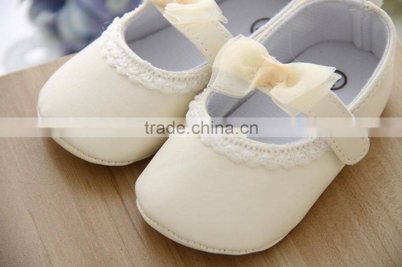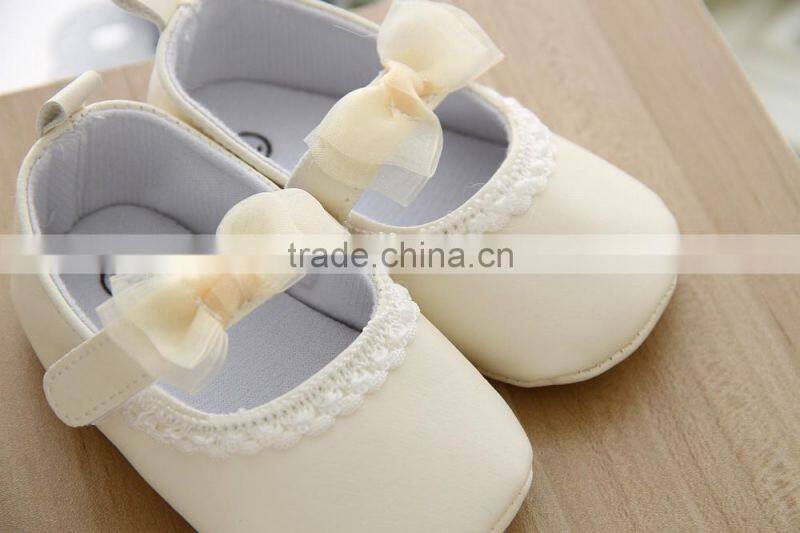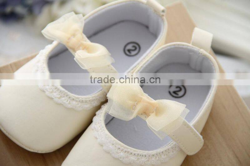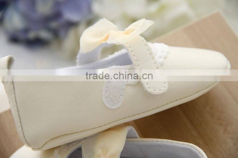 Wholesale Soft Sole Baby Leather Shoes Yellow Lace Bow Kids Shoes Baby