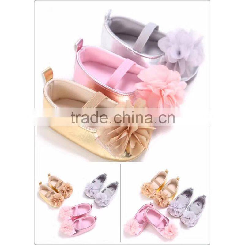 2017 Summer Pretty Shoes Kids Gold Sliver Pink Colors Chiffon Flowers Kid Sandal
