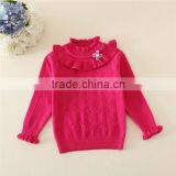 2015 TRENDY DESIGN KNITTED SWEATERS SOLID KIDS GIRLS PULLOVER SWEATERS APPLIQUED WITH BREASTPIN