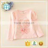 Fashion 100%Cotton Long Sleeve Baby Kids t Shirts O-neck With Beads White Girls Tees