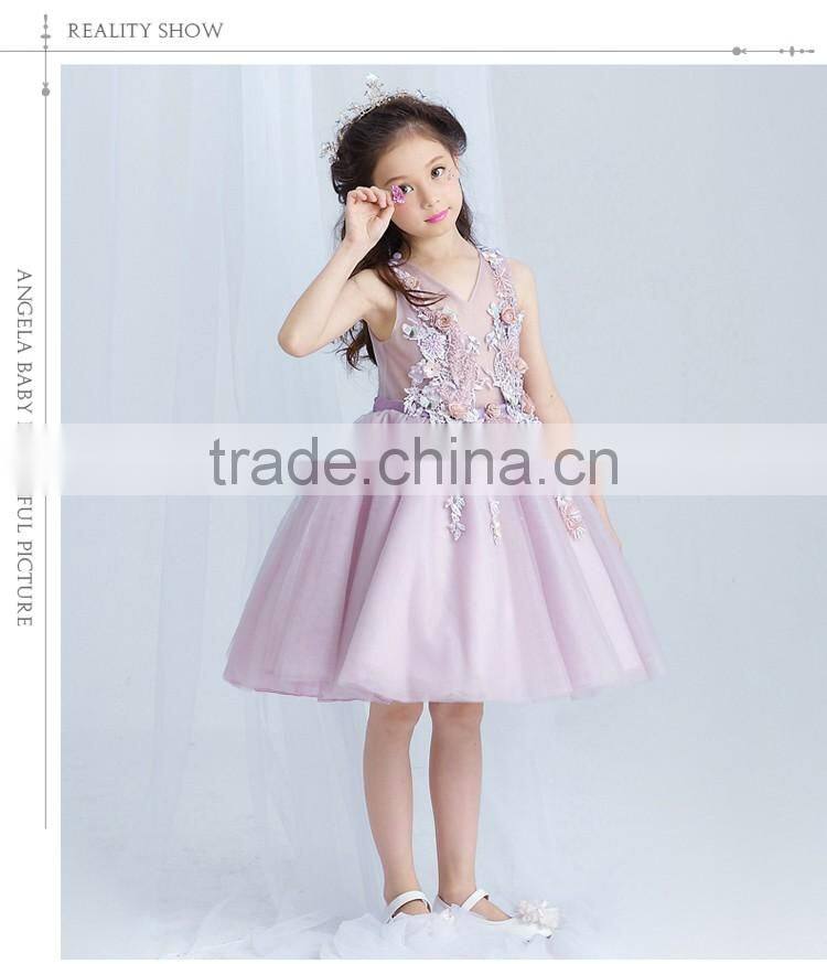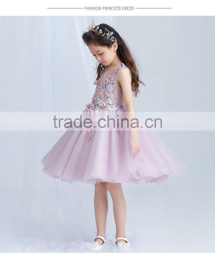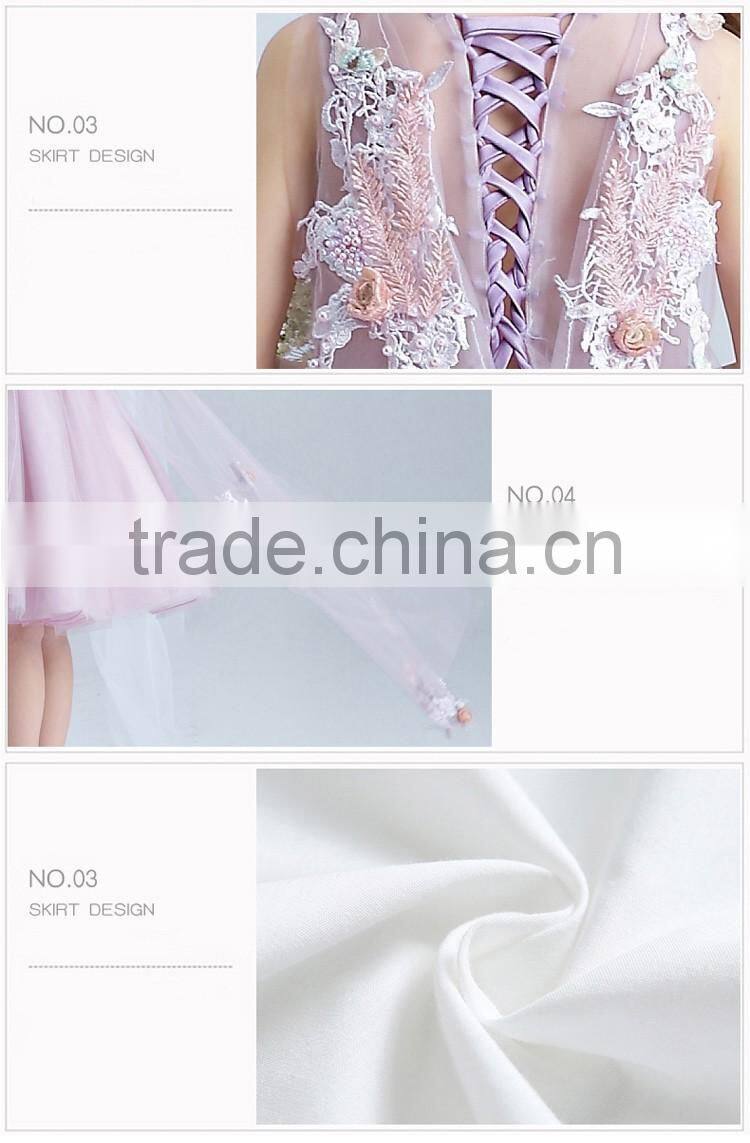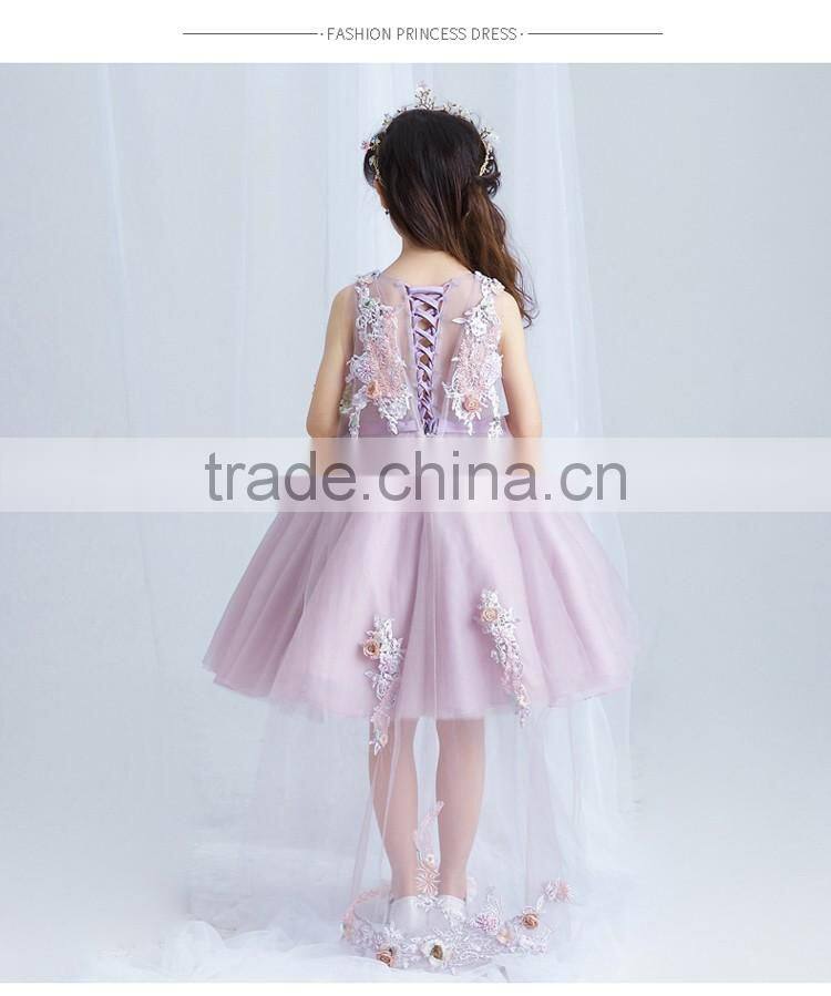 Best Quality Purple Handmade Decoration Girl Party Wear Western Dress