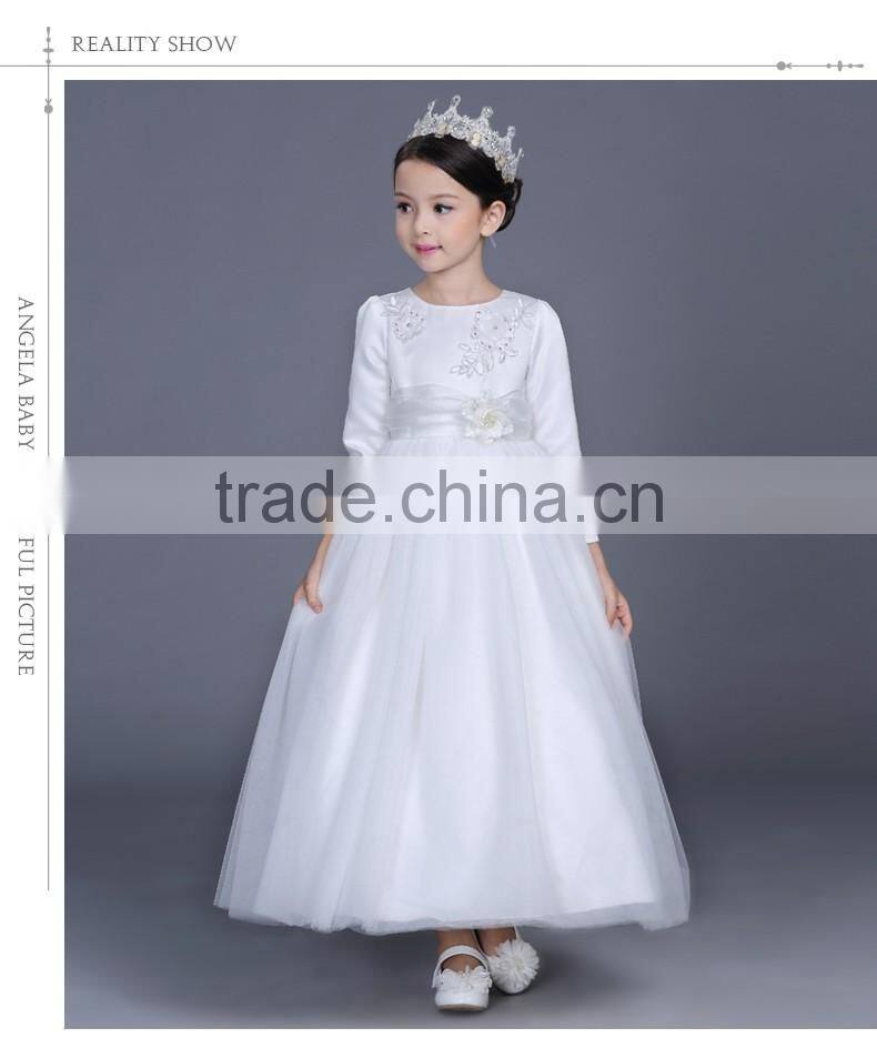 2017 Beads Kids Clothing Models Big Flowers White Lovely Kids Gown Dress