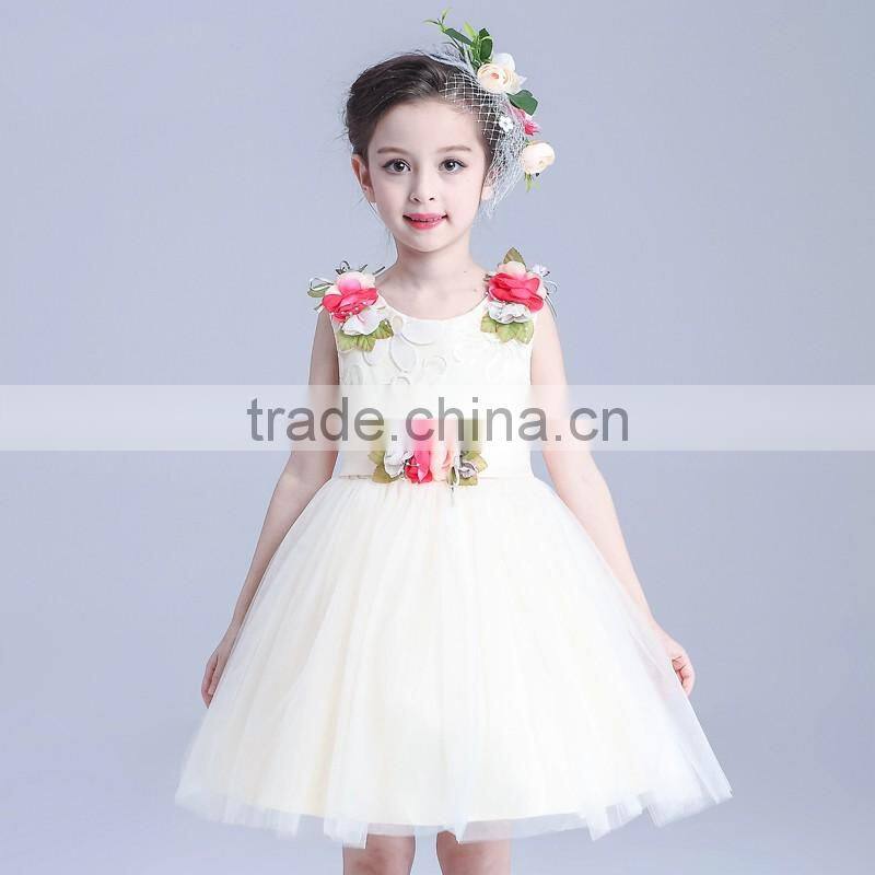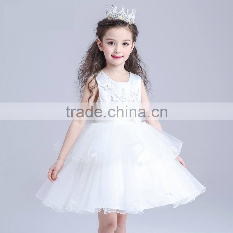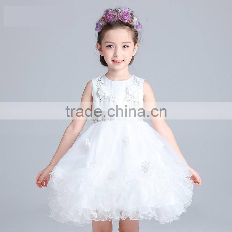 2017 Beads Kids Clothing Models Big Flowers White Lovely Kids Gown Dress