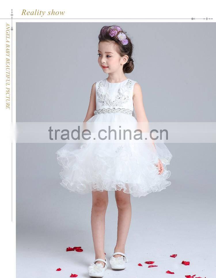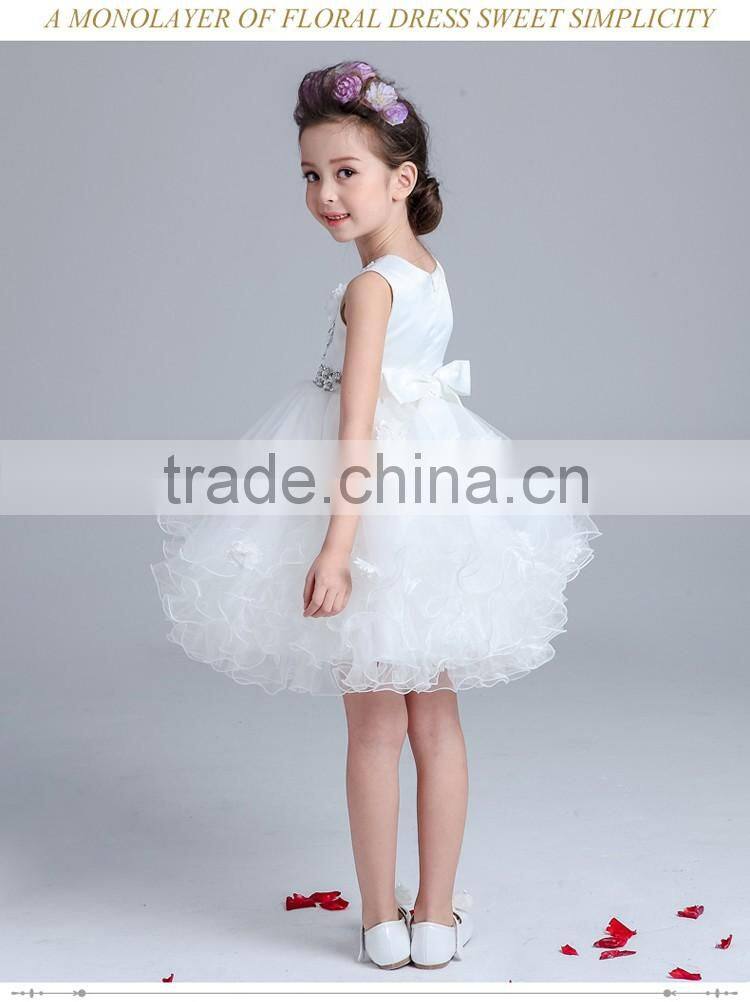 2017 Latest Children Dress Designs White Puffy Children Girl Latin Dance Dress