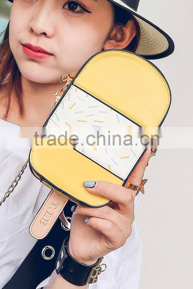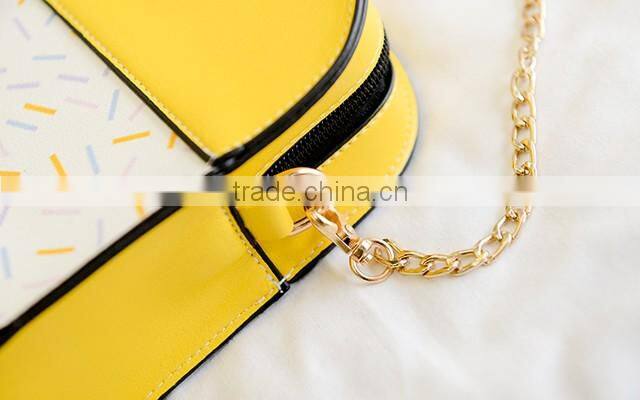 2017 wholesale price fancy newest pictures lady fashion handbag with yellow and white color