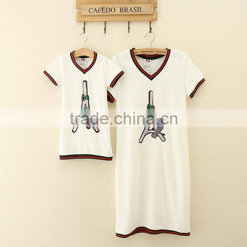 2017 Latest Wholesales Price Pattern White Mother and Daughter Clothes