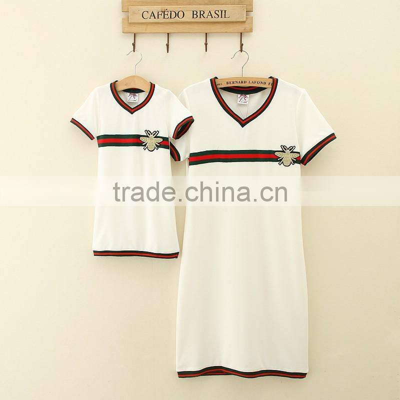 Latest Design 2016 Summer Trend Mother Daughter Dresses Clothes Creamy Fashion Design