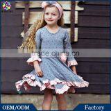 2016 Hot Selling Giggle Moon Remake Outfits Grey Dot Girl Dresses With Pink Ruffle Tiered Long Maxi Girl Dress