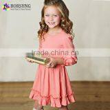 Spring Children Formal Dresses Girls Round Neck Solid Color Dresses Kids Frock Designs Girls Dress
