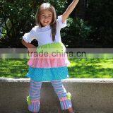 2017 Summer Outfits Clothing Set Cotton Sleeve Children Kids Girls Cute Colorful Ruffled Boutique Outfits