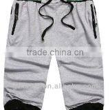 CVC Sweater Cloth Men's Casual 3/4 Short Pants With Color Contrast and Zipper