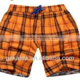 Pure100% Cotton Plaids Fabric Men's Short Beach Pants With Color Contrast