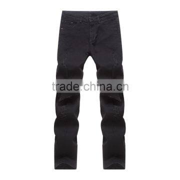 2016 new men's fashion jeans black jeans male personality folds comfortable hotsale biker jeans