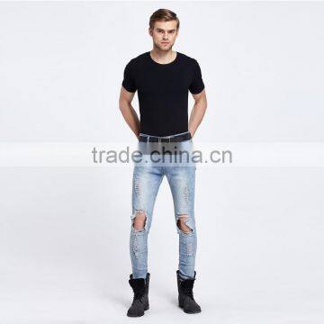 2016 new men's fashion men's jeans bule jeans hole personality male personality pants