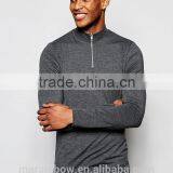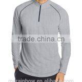 High Quality Mens 1/4 Zipper Long Sleeve T-Shirt Grey Plain Muscle Fit Gym T Shirt Sports Wear OEM
