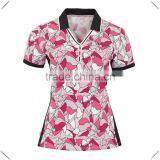 China Manufacturer Wholesale Fancy Sublimation Printing Ribbing V Polo Neck Ladies Printed Golf Polo Shirt Pink