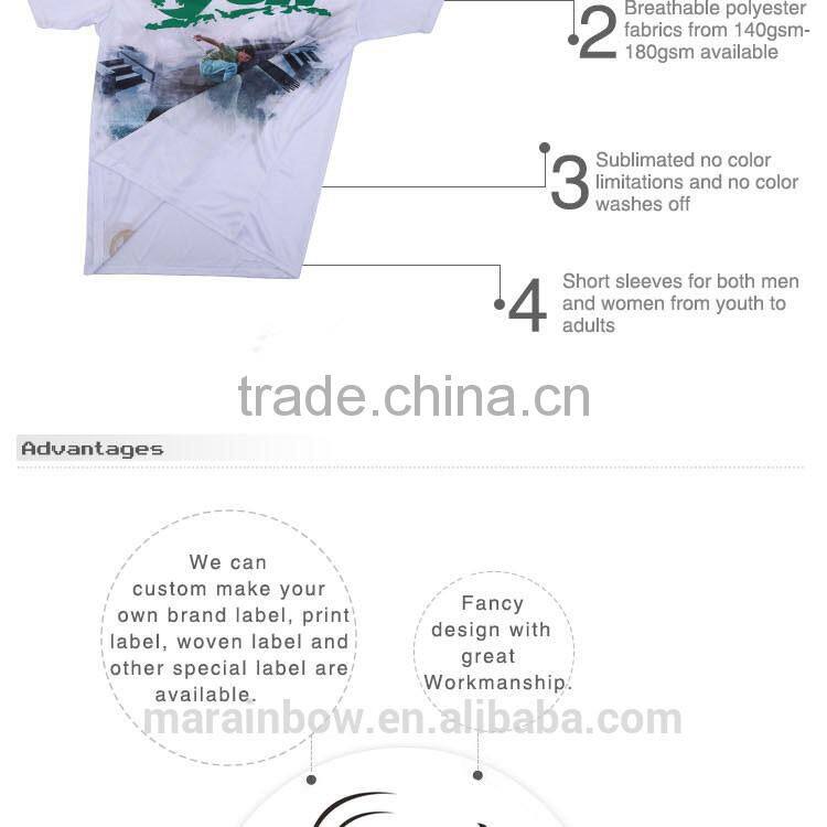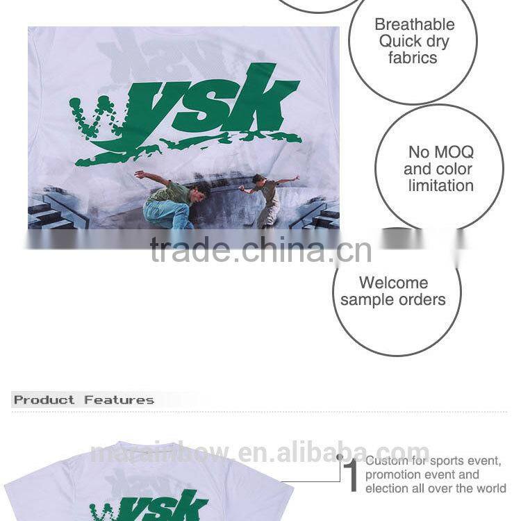 5% Elastane 95% Polyester Dry Fit Mens Sublimation Printed O neck T shirt Custom Heat Trasfered Tee Wholesale