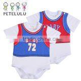 Wholesale Short Sleeve Blue White Graphic Letters Printing Sport Baby Custom Baby Romper Bodysuit Clothes