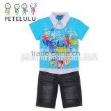 New Outfit Petelulu Kids Garment Brand OEM Baby Outdoor Clothing High Quality Cotton Wear for Summer Kids Boy Short Sleeve Set