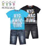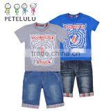 Wholesale Summer Casual Branded Baby Boy's 2piece T-shirt Set Short-sleeve T-shirt + Jeans Pants Short