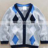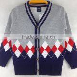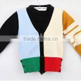 New Design V Neck Contrasted Colors Boys Cardigan Sweater