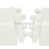 Cute Design Crew Neck 7GG Cotton Children Pompom Sweater