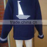 Child Teenager Kids Sailing Boat Pattern Dark Navy Blue Pullover Sweater