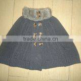 2016 Winter Fur Collar Cable Knitted Baby Sweater Ponchos