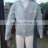 Custom Children Kids Heather Grey V-neck Button up Plain Knit Cardigan
