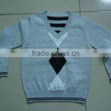 V-neck Pure Cotton Knitting Back Stripe Boys Argyle Sweater