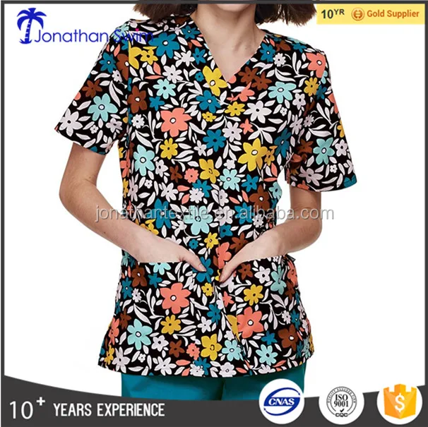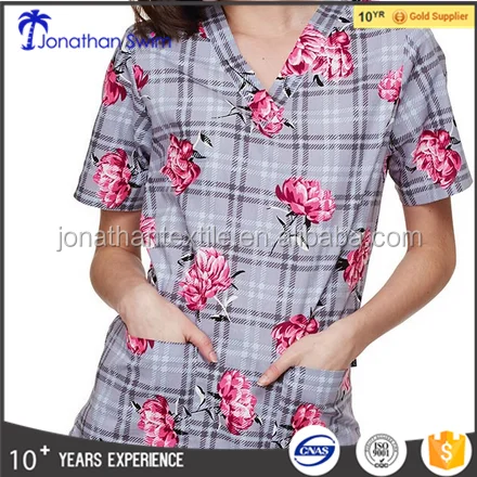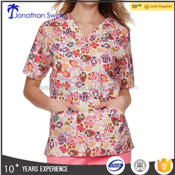 2016 Fashion Printed Design Hospital Nurse Scrubs Uniforms