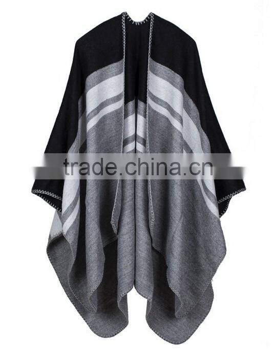 Wholesale China Factory Price Female Scarf Sewing Brim Grid Design Imitated Cashmere Material Women Shawl