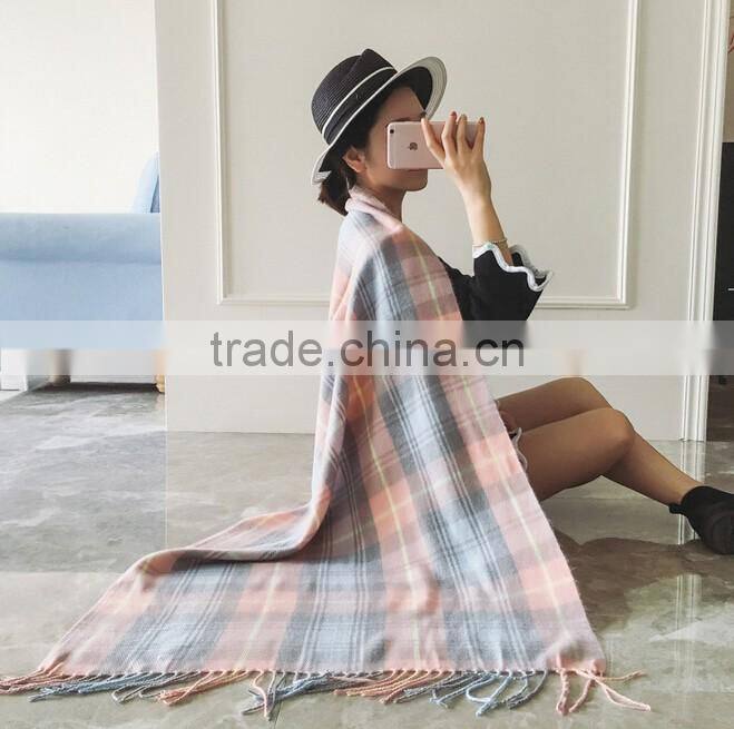 Popular Style Girl Scarf Spring and Autumn Grid Imitated Cashmere Material Useful for Nearly Any Occasion Ladies Cappa