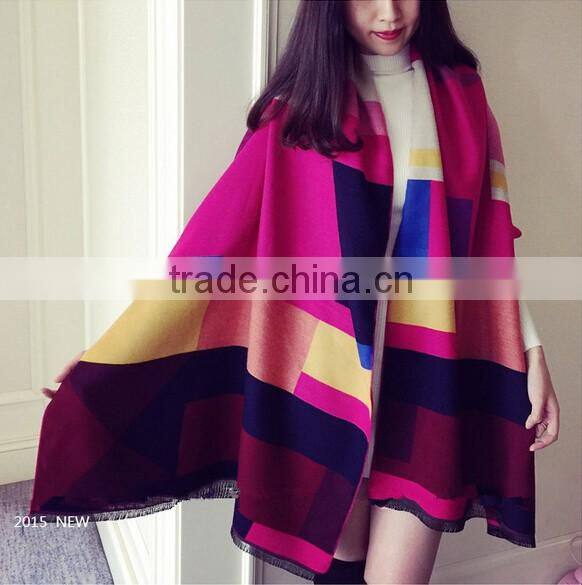 Autumn and Spring Ladies Scarf Colorful Grid Imitated Cashmere Material Long Style Girl Cappa for Outdoor Activities