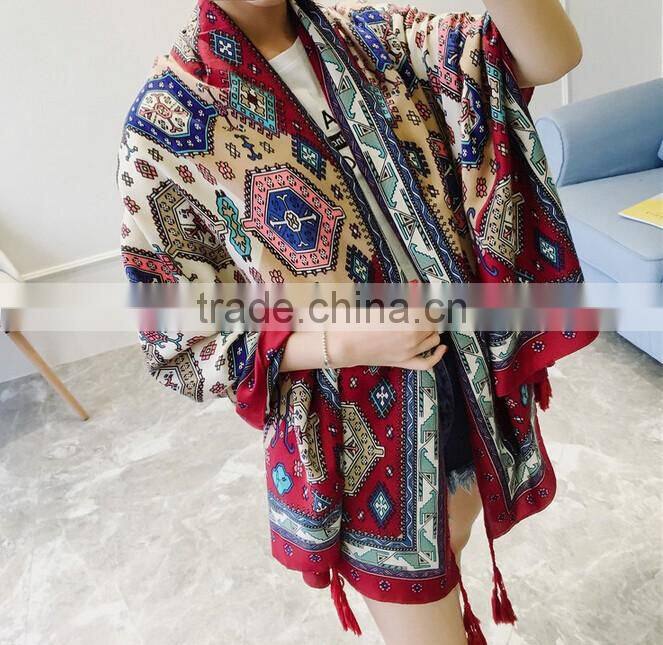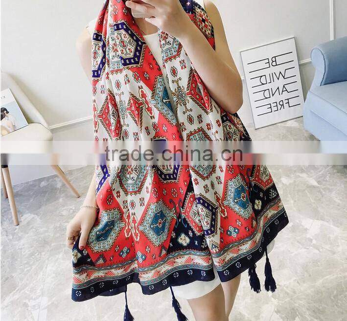 2017 New Spring China Girl Scarf National Wind Geometric Figure Cotton Material for Trip Women Tippet