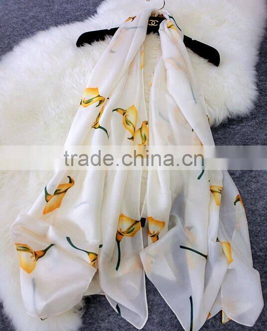Wholesale Price 2017 Spring and Autumn Women Scarf Black and White Colors Lily Flowers Imitated Silk Material Lady Cappa