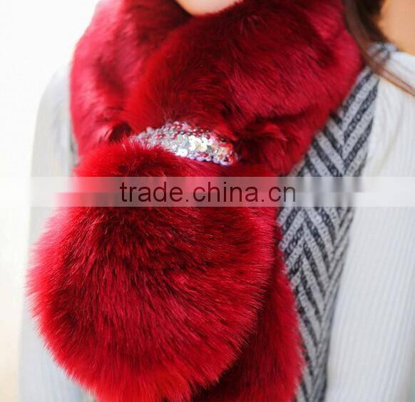 Cheap Price 2017 New Year New Model Girl Fur Scarf Faux Wool 95*12cm Fashional Style Young Ladies Shawl