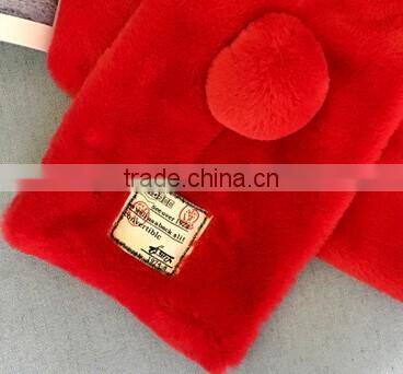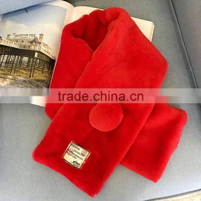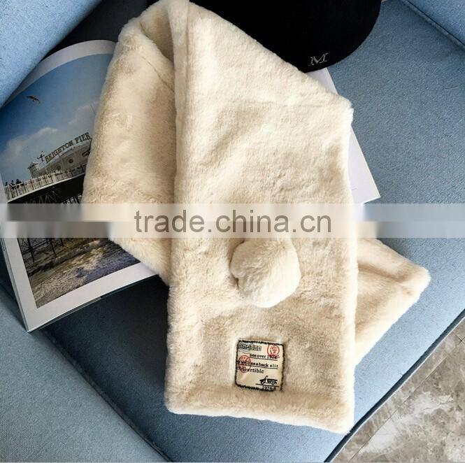 High Quality 2017 Early Spring Girl Muffler Solid Color Fake Rabbit Fur With Post Stamp Woven Lable Teenager School Scarf