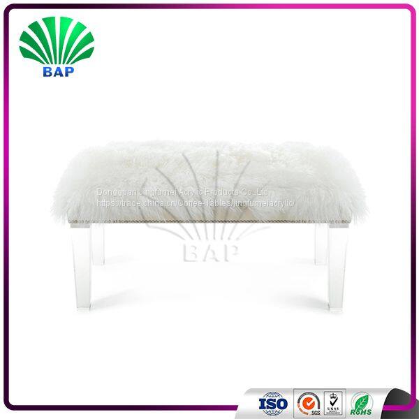 Luxury White Velvet Sofa Artificial Fur Cushion Bench Portable Sofa Bed Dressing Table Bench